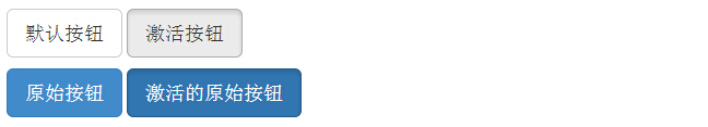 <p> <button type="button" class="btn btn-default btn-lg ">默认按钮</button> <button type="button" class="btn btn-default btn-lg active">激活按钮</button> </p> <p> <button type="button" class="btn btn-primary btn-lg ">原始按钮</button> <button type="button" class="btn btn-primary btn-lg active">激活的原始按钮</button> </p>结果如下所示: