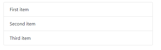 <ul class="list-group"> <li class="list-group-item">First item</li> <li class="list-group-item">Second item</li> <li class="list-group-item">Third item</li> </ul>