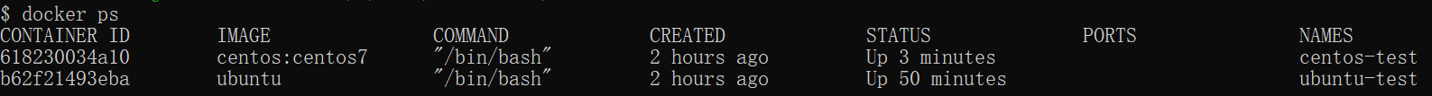 最后我们可以通过 docker ps 命令查看容器的运行信息: