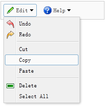 菜单按钮(Menu Button)包含一个按钮(button)和一个菜单(menu)组件,当点击或移动鼠标到按钮上,将显示一个对应的菜单。