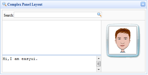 <div class="easyui-panel" title="Complex Panel Layout" iconCls="icon-search" collapsible="true" style="padding:5px;width:500px;height:250px;">