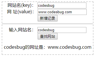 实例解析:- 使用 key="sitename" 和 value="CodesBug教程" 创建一个 localStorage 键/值对。