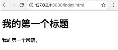 执行 server.js 文件:$ node server.js Server running at http://127.0.0.1:8080/接着我们在浏览器中打开地址:http://127.0.0.1:8080/index.html,显示如下图所示: