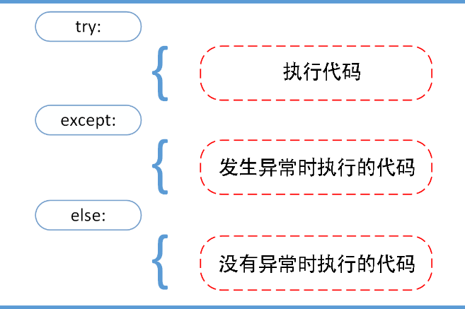 - 如果没有异常发生,忽略 except 子句,try 子句执行后结束。