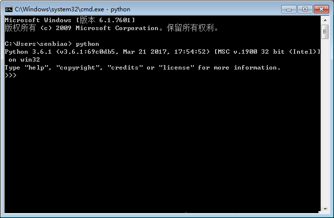 $ python # Unix/Linux 或者 C:>python # Windows/DOS