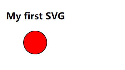 <html> <body> <h1>My first SVG</h1> <svg xmlns="http://www.w3.org/2000/svg" version="1.1"> <circle cx="100" cy="50" r="40" stroke="black" stroke-width="2" fill="red" /> </svg> </body> </html>运行结果: