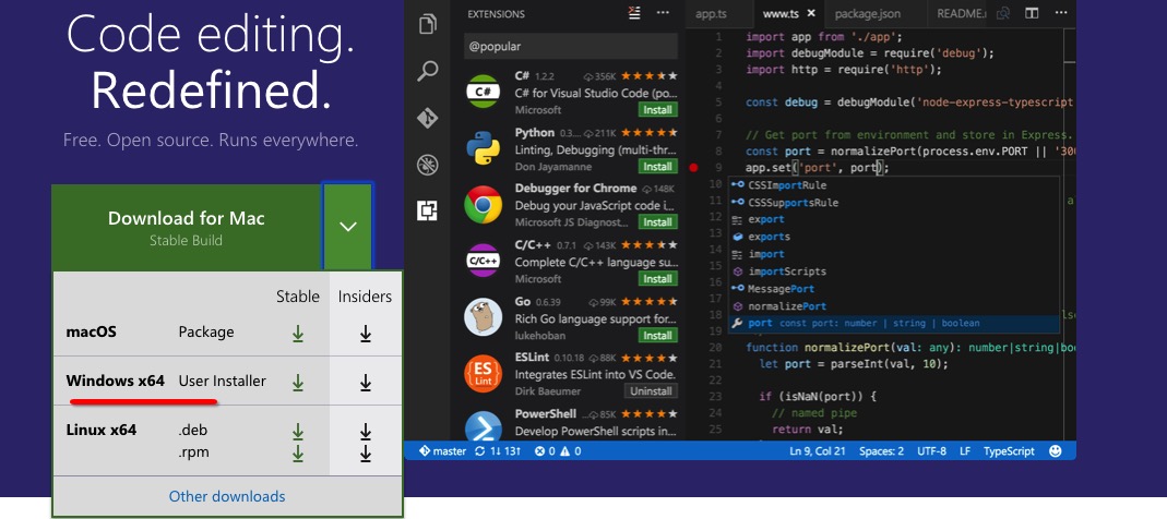 下载地址:https://code.visualstudio.com/。