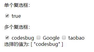 <input type="checkbox" id="codesbug" value="codesbug" v-model="checkedNames">